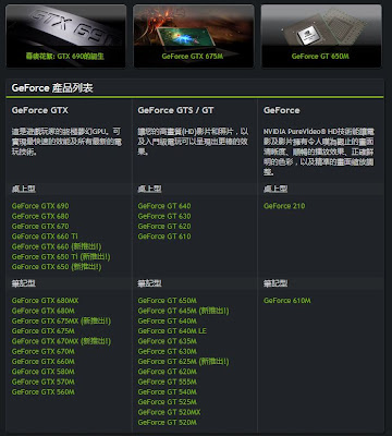 先說的是Nvidia,先要分的是GTX和GT,GTX的會是高級的機種而GT是中級,沒有GT或GTX字樣的是入門級,與處理器同樣是最前的數字以世代的區分(目前最新的是6),往後的數字愈高愈強,另外還有小分M、MX的,MX會強一點點但差距不大,主要是架構的差距而已。