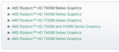 接著的是AMD,同樣地,最初的數字是世代的區分(目前最新的是7),目前最強的是 Radeon HD 7900M系列,最低的是Radeon HD 7300M系列,往後的數字愈高愈強。